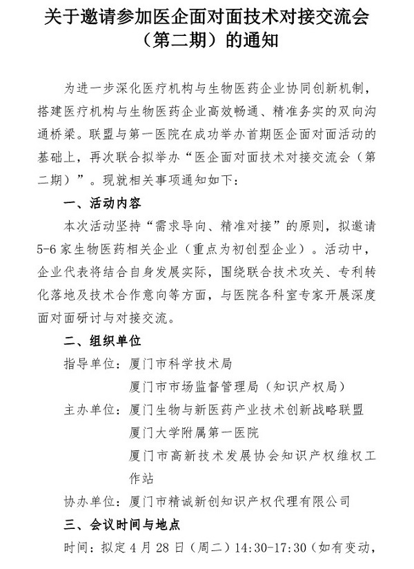 关于邀请参加医企面对面技术对接交流会(第二期)的通知